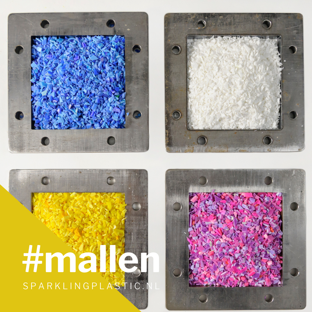Met een pers kun je gesmolten plastic onder hoge druk in een mal samenpersen. Zo maak je vlakke, stevige platen of tegels die als basis kunnen dienen voor meubels, panelen of andere duurzame toepassingen.